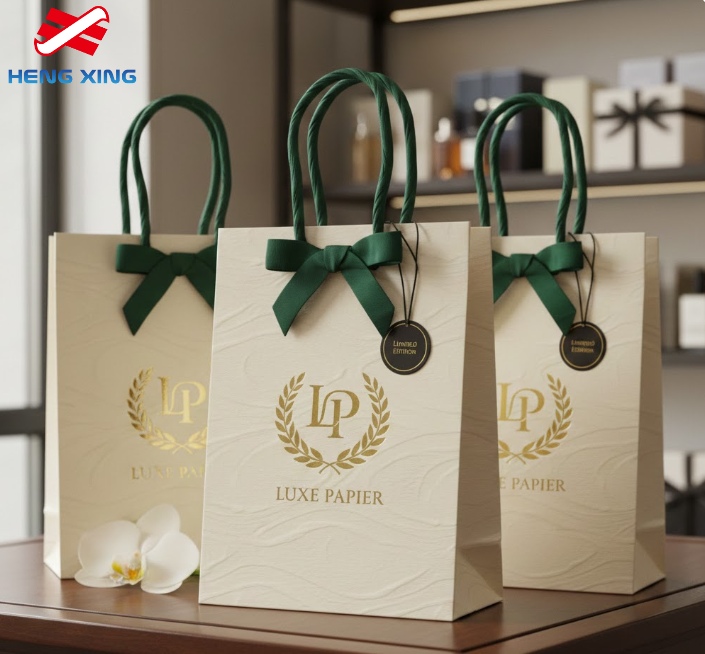 В HENGXING эксклюзивные бумажные пакеты класса люкс разрабатываются не как одноразовые изделия, а как продуманные элементы фирменного стиля, созданные с учетом структурных, визуальных и этических требований.
