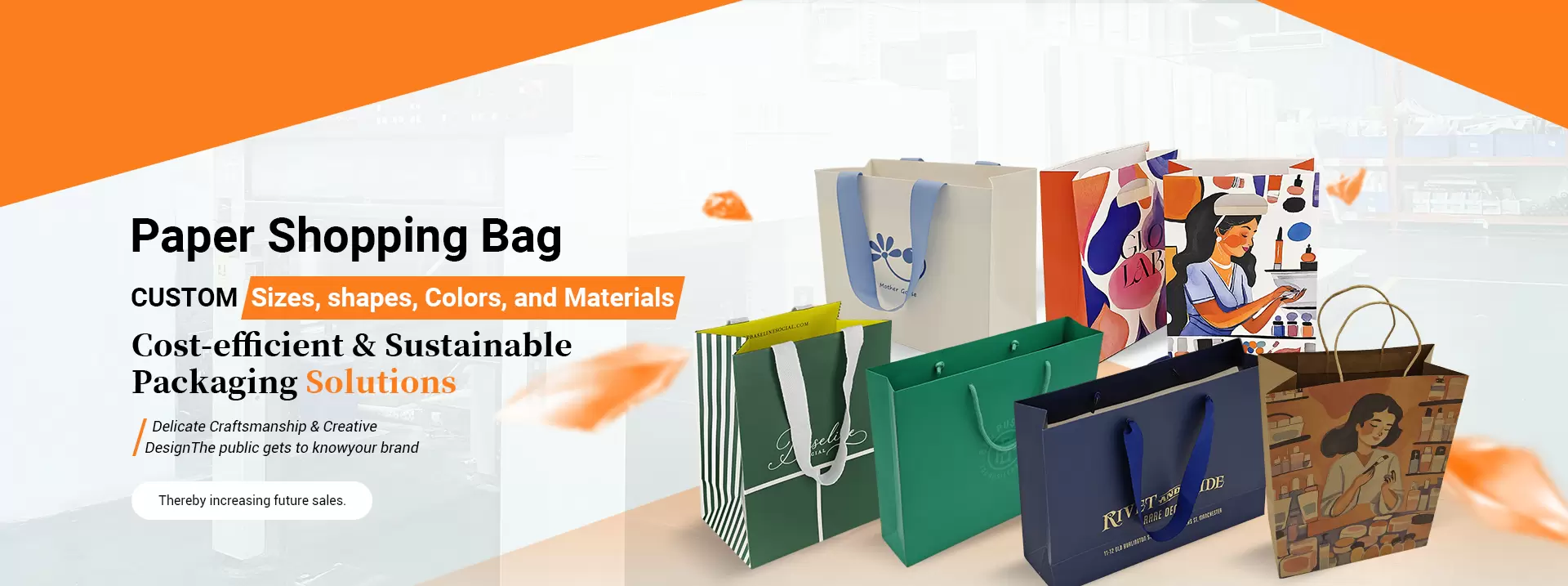 Логотип бренда: Разместите логотип бренда на видном месте на лицевой стороне бумажного пакета, чтобы он был чётким и узнаваемым. Оптимизируйте дизайн логотипа, например, регулируя насыщенность цвета, добавляя эффекты тени и т. д., чтобы усилить его визуальное воздействие и выделить среди множества бумажных пакетов.