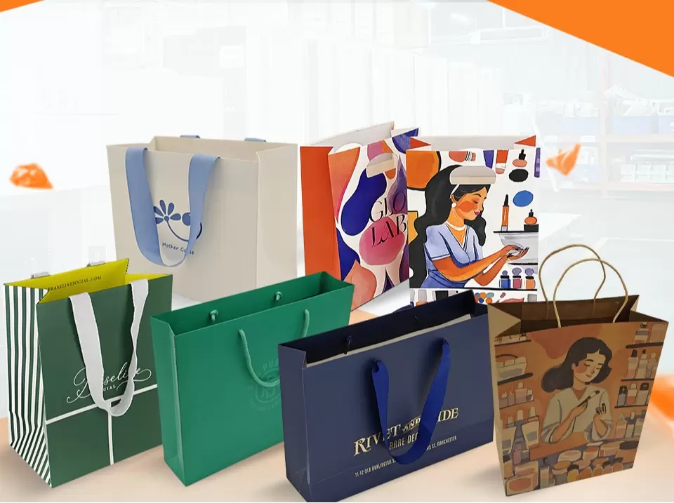 Процесс печати: использование высокоточного печатного оборудования гарантирует чёткость и яркость рисунка и текста. В зависимости от требований дизайна, для придания бумажным пакетам объёма и глянцевости могут быть использованы специальные методы печати, такие как горячее тиснение, горячее серебряное тиснение, УФ-печать, тиснение и т. д. Например, логотип бренда можно нанести методом горячего тиснения, чтобы сделать его более привлекательным и стильным.
